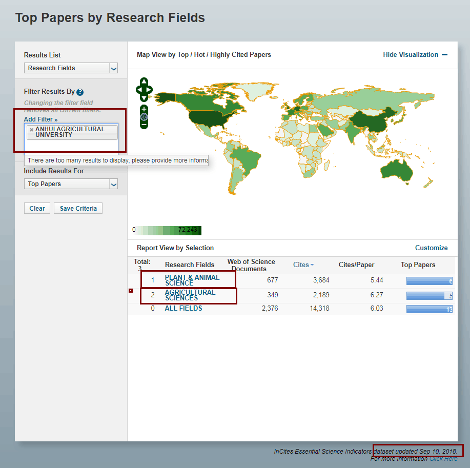 On Sept 14th, Clarivate Analytics, formerly known as Thomson Reuters, published the latest data of ESI(Essential Science Indicators). In worldwide disciplines ranking of Agricultural Science, Anhui Agricultural University came into top 1% for the first time, following the success in Plant and Animal Science of AAU.The top 1% ESI disciplines are generally regarded as high-level international disciplines. By the end of Sept. 2018, there have been 349 AAU papers published in Agricultural Science and 667 in Plant and Animal Science. According to published data, the average citations of papers in Agricultural Science are 6.27 andtotal cites are 2189, while in Plant and Animal Science 5.44 and 3684, showing strong international academic influence.